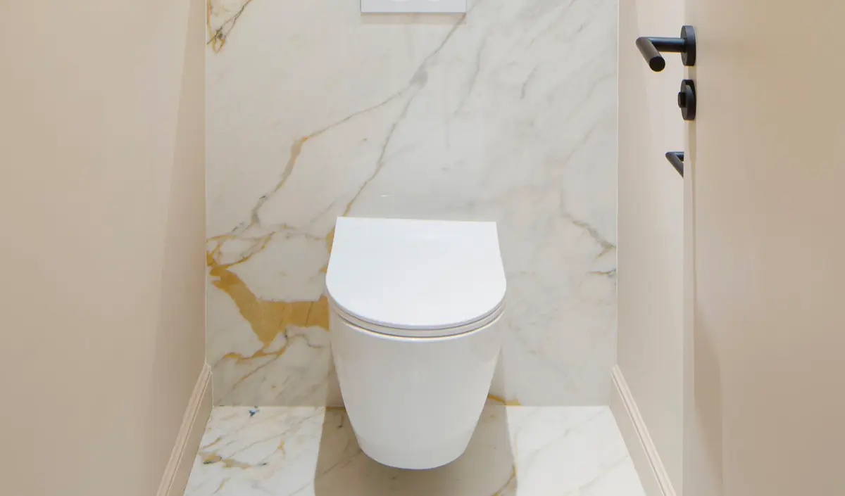 5. Du marbre blanc pour une déco chic dans les toilettes © Maison Créative